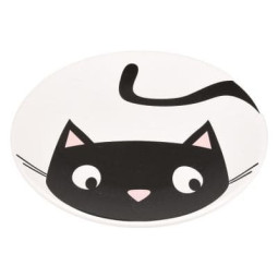 Comedero cerámica bonito para gatos, con estampado tierno de gato, muy plano para proteger los bigotes, deslizamiento reducido gracias al borde inferior rugoso, fácil de limpiar.