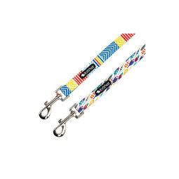 Correa de nylon ligero y muy cómodo para perros con estampado de formas geométricas azul, rojo y amarillo.