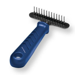Rastrillo fuerte y resistente de púa corta para perros con largura de pelo medio.