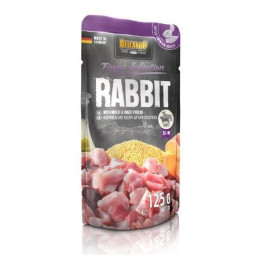 COMPOSICIÓN: Corazón, hígado, pulmón de conejo (26 %); carne, corazón, hígado y mollejas de ave (26 %); caldo de conejo, ave, cordero (24,5 %); corazón, hígado, pulmón de cordero (14 %); mijo cocido (4 %); batata, boniato (4 %); aceite de cardo (0,5 %); cáscaras de huevo secas (0,5 %); minerales (0,5 %)